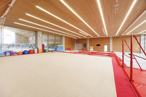 森近コーチ――大きな窓があるのも特徴です。窓からの外光が眩しいと練習に支障があるのですが、そのあたりも考慮して設計されています。体操教室がある南側の窓はカーテンで開閉ができ、クラブの練習場の窓は北側なので、眩しくならない程度で自然光が入ります。窓の外の木々や空と一緒に、練習に励む選手の姿を見ると、「カッコイイ場所で練習してるなぁ」と、誇らしく感じます。