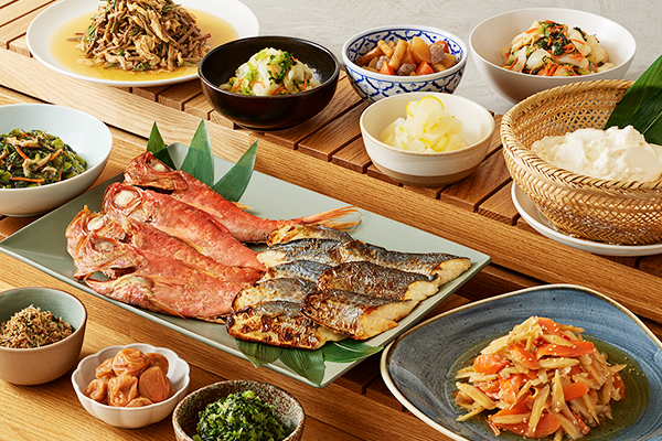 ホテル1階には無印良品のカフェ「Café&Meal MUJI」とショップ「MUJI com」があり、朝食付きプランは、こちらのカフェで朝食ビュッフェがいただけます。鎌倉や周辺地域の食材を中心に使った品々が80種類以上も勢揃い。鎌倉名物のしらすや、鎌倉ハムのソーセージ・ベーコン、地場野菜のサラダ、無印良品のカレーなど、鎌倉×無印良品がコラボしたおいしい朝食でパワーチャージしましょう。