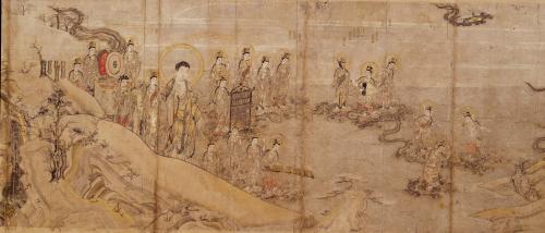 国宝指定の寺宝「当麻曼陀羅縁起絵巻二巻」は、1675(延宝3)年に内藤家から寄進されたもの(鎌倉国宝館に保管)。作品は、奈良当麻寺に所蔵される「当麻曼陀羅図」の由来を描いたもので、鎌倉時代の絵巻の優品として名高い絵巻として知られています。