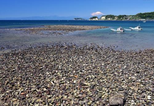 遠く、稲村ヶ崎、江の島が望める和賀江嶋