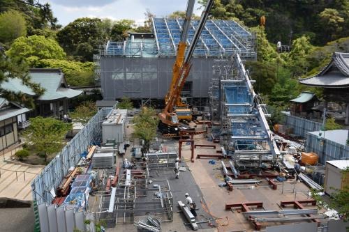 光明寺では、2019(令和元)年11月から、浄土宗開宗850年慶讃記念事業として、重要文化財の大殿(本堂)の保存修理工事を行っています。現在は境内の開山堂が仮本堂となっており、阿弥陀如来および諸尊像は開山堂に移っています。