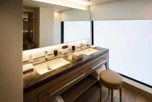 「スーペリア(ツイン/ダブル)」は窓際に縁側のようなソファスペースがあるのが特徴。洗面台はコーナーに配され、大きなミラーや明るい照明、アメニティが揃った引き出し、イスも用意され、コンパクトながら使いやすさが考え抜かれています。