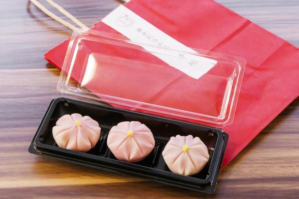 1時間ほどで3つの桜が見事完成。フードパックと紙袋でお持ち帰りでき、日持ちは冷蔵で2~3日、冷凍で1週間です。