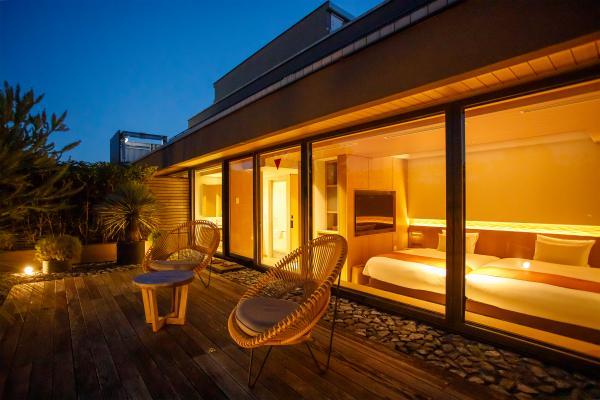 こちらは、屋外テラス付きのガーデンルーム(ダブル/ツイン)。客室は27~33平方メートルで、ベッドルームと同じくらいの広さのウッドデッキテラスが独り占めできます。