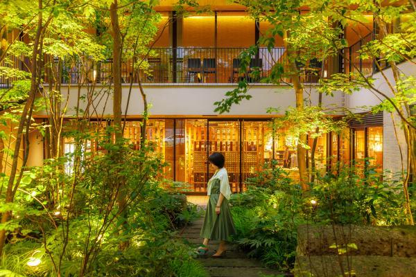 地下1階地上5階建てで、地下1階は駐車場、1階はレストラン&ショップ、2階はフロントロビー。1階には大谷石を配した中庭もあり、鎌倉駅徒歩2分とは思えない静かな空間が広がっています。