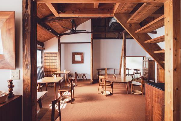店舗の裏には酒屋さんの倉庫を改築したテラス席も。趣のある木造で、大きなグリーンを配した空間は植物園や秘密基地みたい。