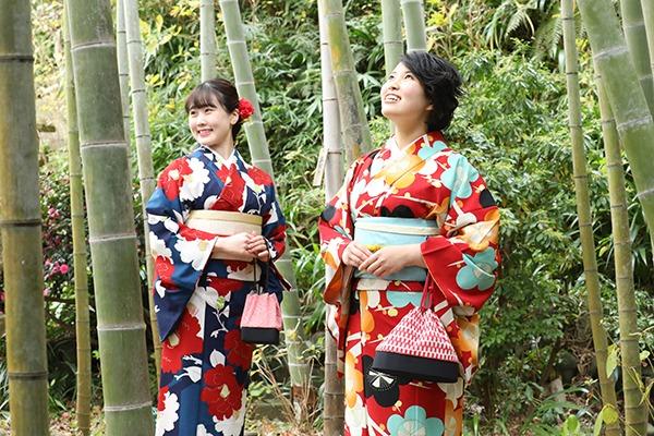 艶やかな和装に身を包み、歴史ある鎌倉をそぞろ歩き