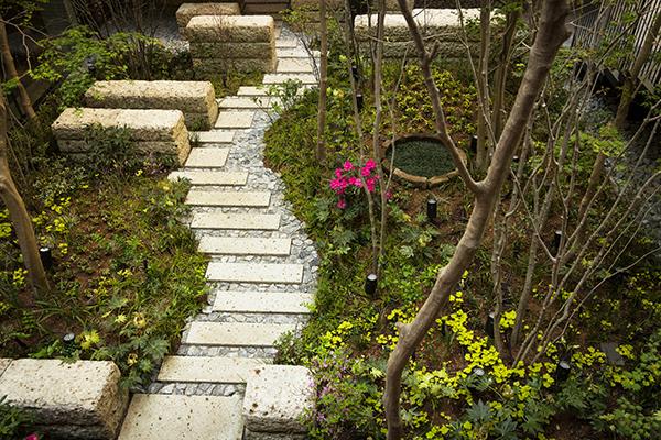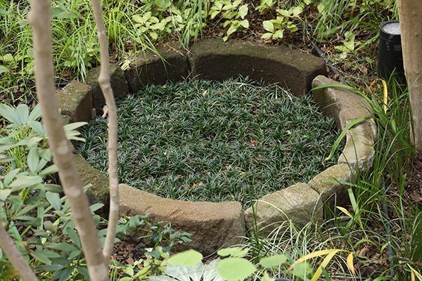 希少な鎌倉石を用いた井戸型の花壇。中庭にあるので探してみるのもいいですね。