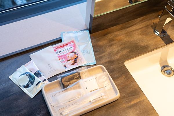 全室バスルームが洗い場付きで、フットケアシート、蒸気アイマスクや、基礎化粧品セットなど女性にはうれしいアメニティも充実しています。