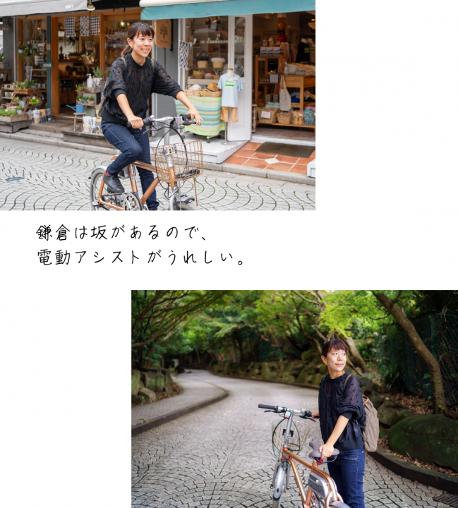 御成通りから個人商店が並ぶ由比ガ浜大通りに出て、長谷方面へ。お散歩気分で歩くのも楽しそうだけど、まあまあ距離があるし、細い路地裏にすてきなお店があったりする。一日でいろいろ周りたいときは自転車がぴったりだ。