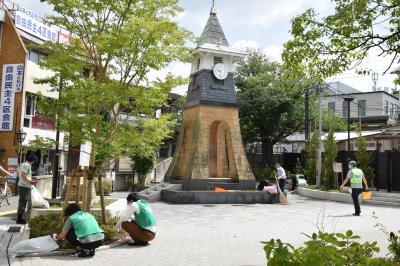 ▶本格的な夏を迎えた鎌倉で、早朝より鎌倉駅西口の時計台広場の定期清掃に参加