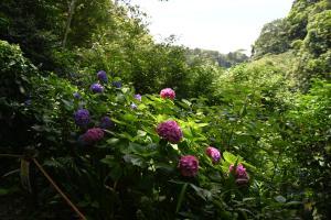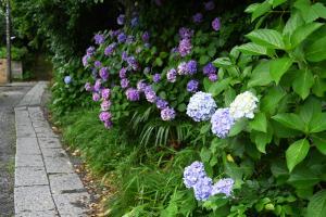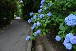 二階堂の通玄橋を通りすぎて瑞泉寺へ向かう道沿いを色々なアジサイが彩っています。近隣の方によって植えられ、大切に育てられているもので、とても見ごたえがあります。