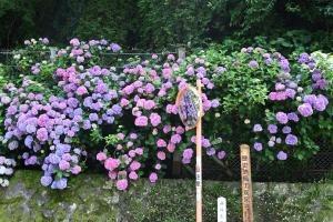 門前のピンクのアジサイ、観音堂前の白アジサイ、御朱印受付近くの青いアジサイなど、様々なアジサイが見頃になっています。