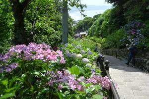 ● あじさい路入口までは、約80段の階段を登る必要があります。加えてあじさい路は、約130段の階段で、いずれもスロープ等はありません