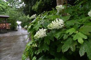 境内の 白いあじさいが見頃を迎えています。