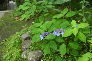 ヤマアジサイが見頃です。境内に沢山の地植えと鉢植えがあり、名札がついているので名前を確認しながらじっくりと観賞すると楽しいです。2枚目写真は土佐涼風(とさすずかぜ)。