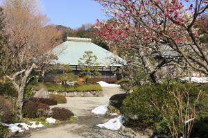 建長寺は、広大な境内に点在する梅が訪れる場所によって異なる見頃を迎えるため、長い期間梅を楽しむことができる名所です。塔頭寺院ごとに異なる梅の品種や景色が魅力で、静かな雰囲気の中でゆっくりと梅の美しさを味わえるのが特徴です。
