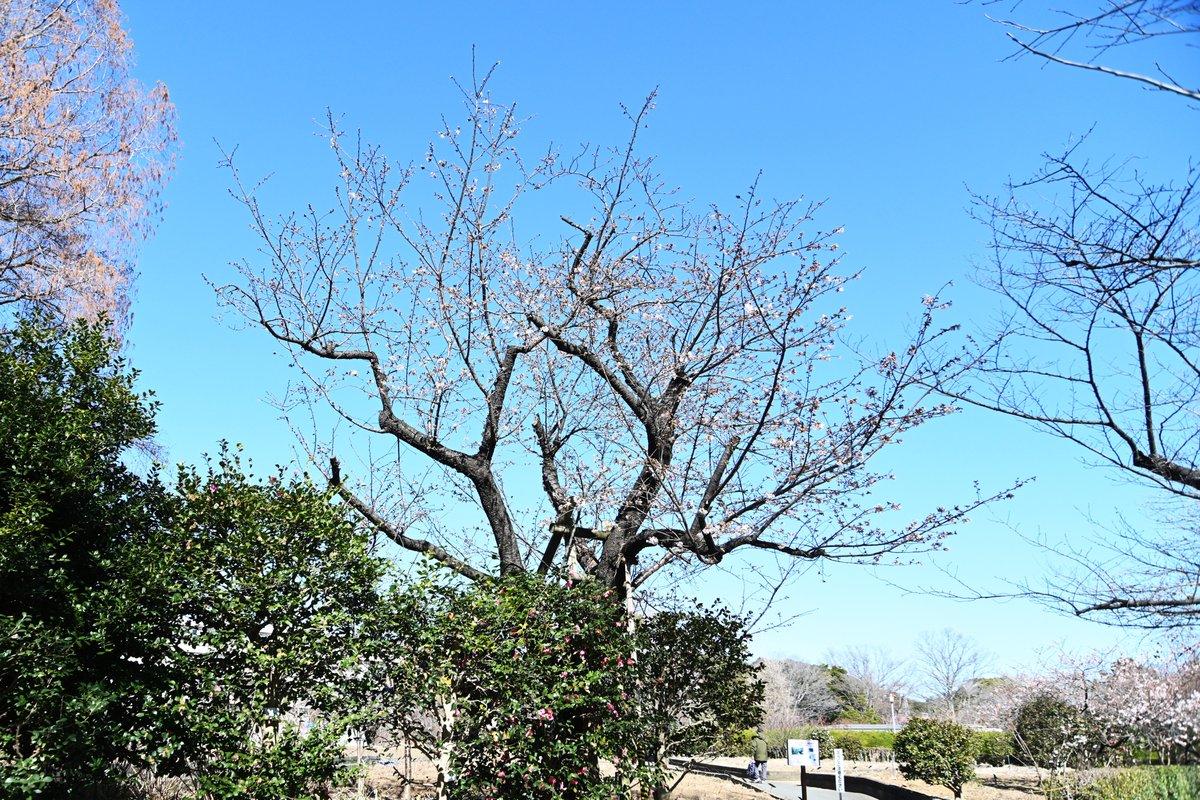 大船フラワーセンター生まれの早咲きの桜「玉縄桜」ですが、その貴重な原木が今年も開花し、一分咲きです。