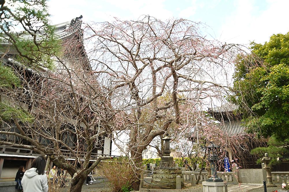 山門付近の枝垂れ桜はほとんどがまだ蕾です。