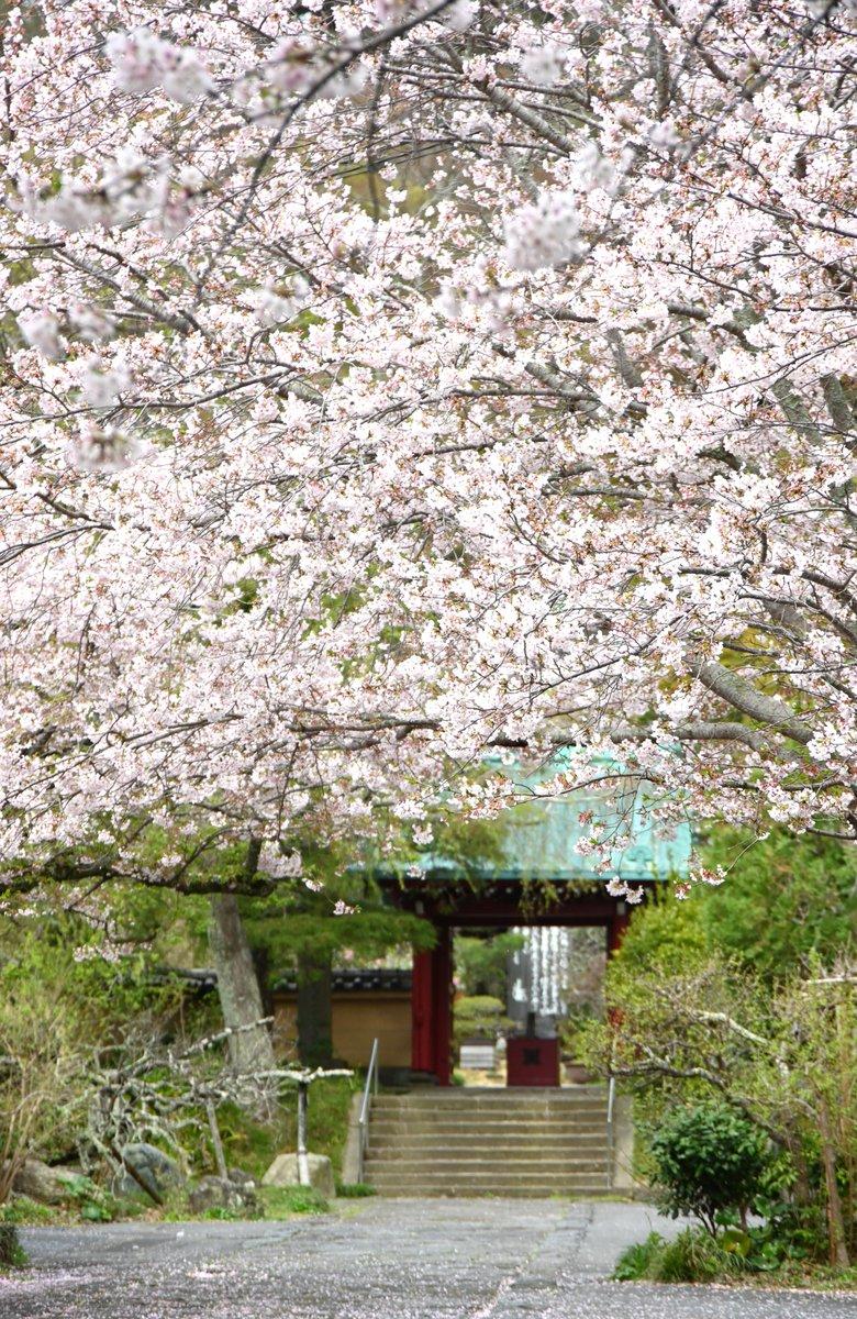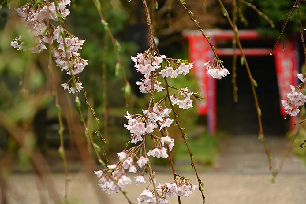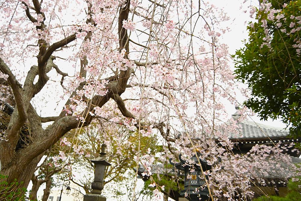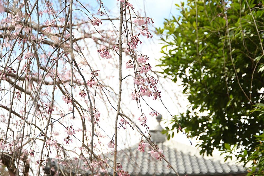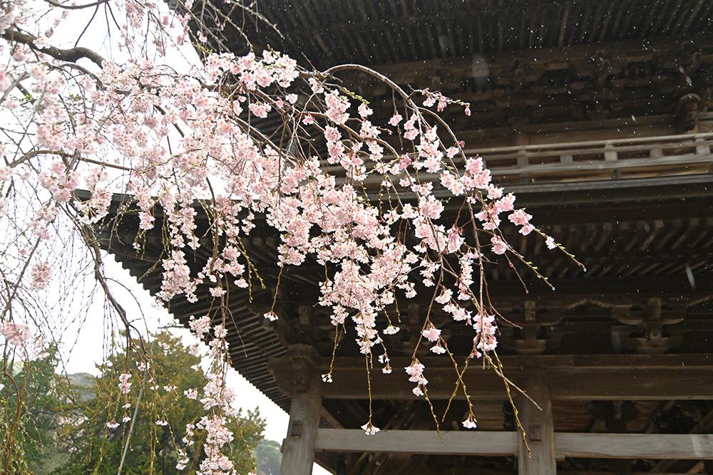 山門前と境内の枝垂れ桜が見頃です。