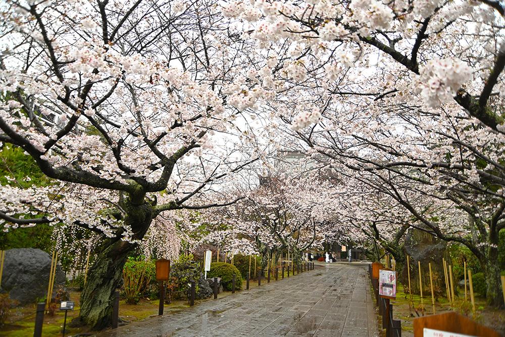 境内全体ではまだ蕾が多いものの、記主庭園のほとりや山門前左の桜が見頃を迎えています。