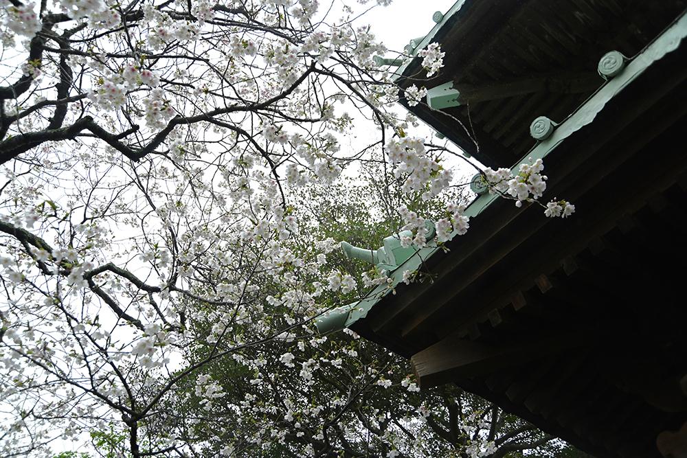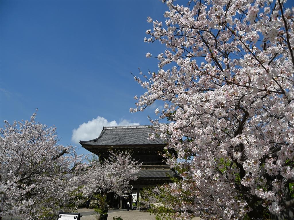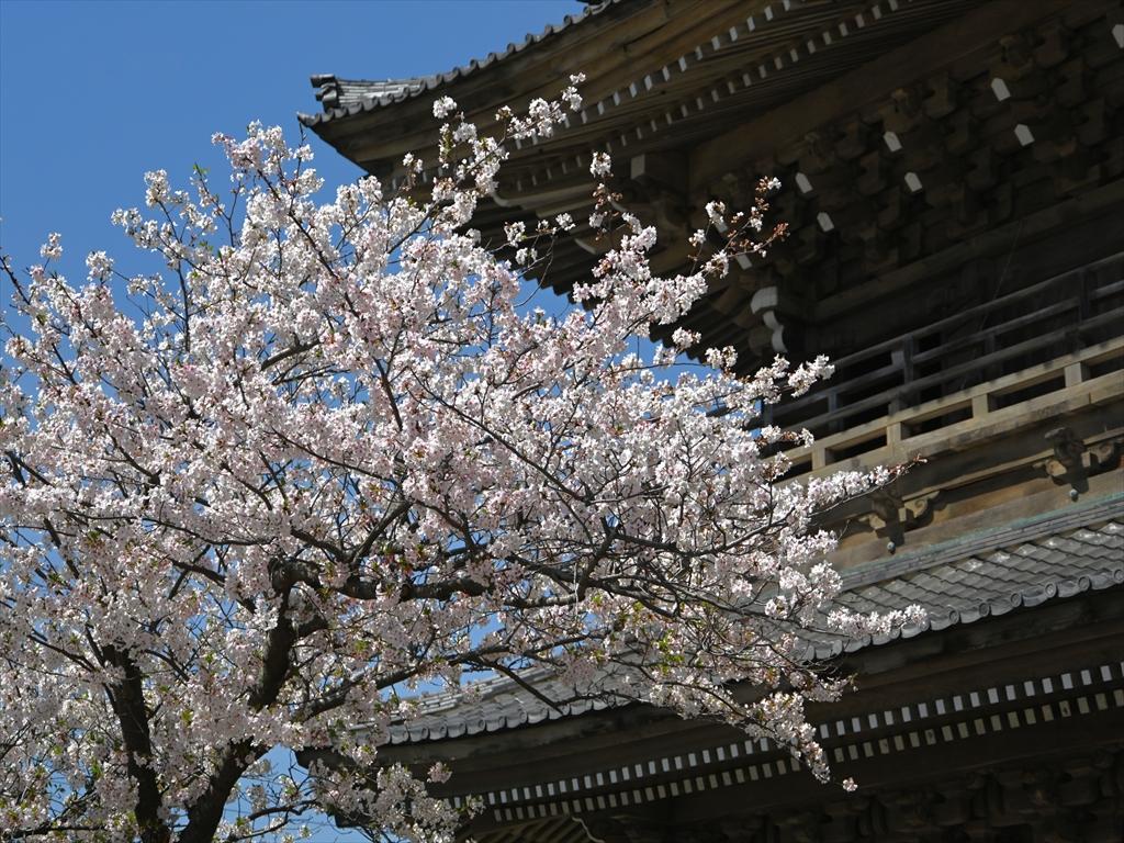 仁王門前の桜が見頃を迎えています。