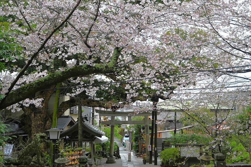 大木の桜が満開近くなり、境内には多くの参拝者が訪れています。