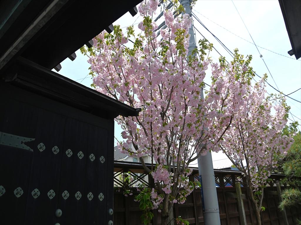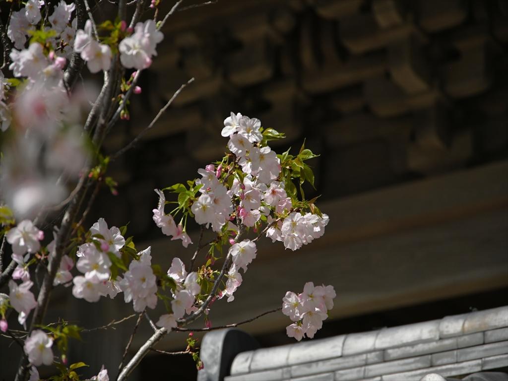 山門を潜り抜けた左手にはソメイヨシノの間に桐ヶ谷桜もひっそりと見頃を迎えていました。