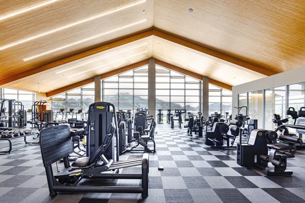 3階にあるのは会員制の「メディカルフィットネスジム」です。足元から天井までの大きなガラス窓が開放的で、もう一方の窓からは2階で練習に励むプロ体操選手が見られ、トレーニングのモチベーションも自然とアップしそうです。
