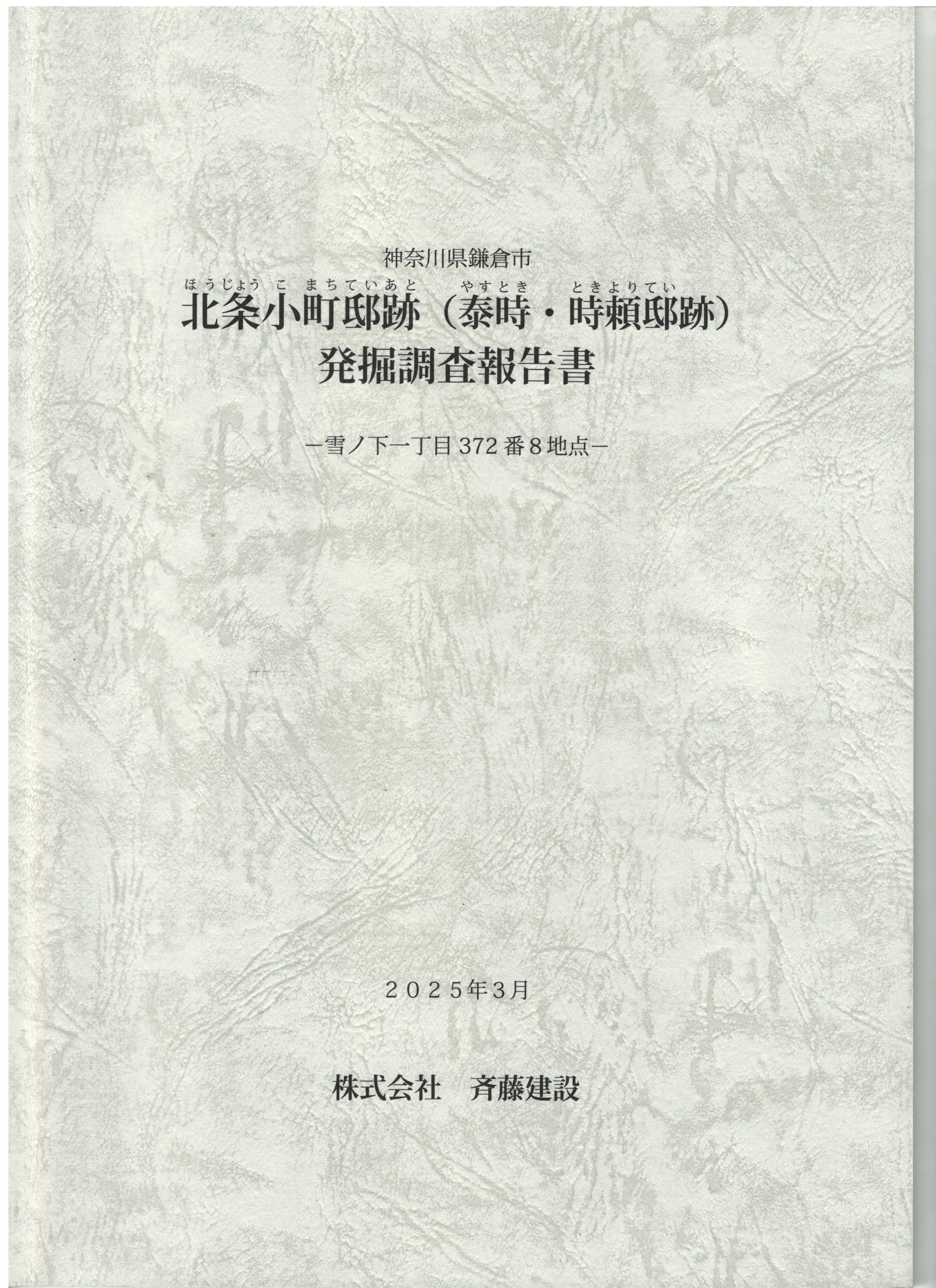 北条小町邸跡(泰時・時頼邸跡)発掘報告書