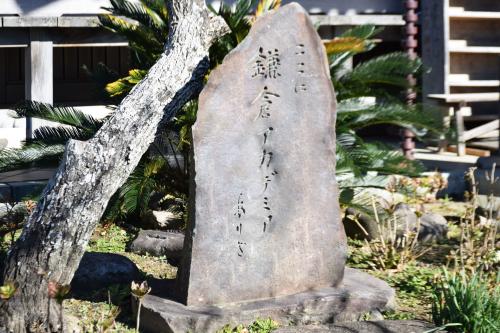 創立から4年後、財政難から惜しくも廃校となりましたが、公開授業やマンツーマンの課外授業など、自由な気風に満ちた先駆性は今日あらためて見直されている。開校から半世紀を経た平成8年には、その足跡を残すため、境内に記念碑が建立されました。「ここに鎌倉アカデミアありき」と記された碑は、「教育の原点」を示すシンボルでもあります。