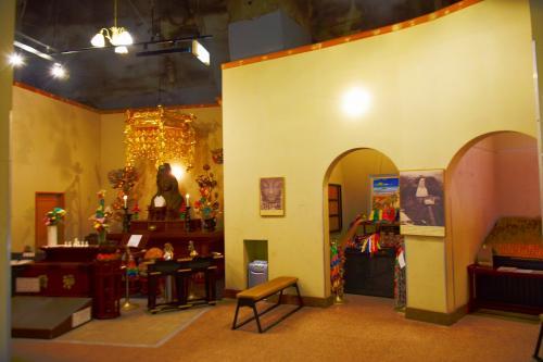 白衣観音像の背中側に回ると、洞窟のような入口があります。中に入ると、祭壇に祀られた観音像。子宝、安産、子どもの無病息災の祈願として、胎内拝観することができます。