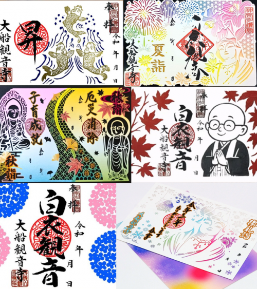季節に合わせた限定御朱印をふくめ、大船観音寺では常に8種類ほどの御朱印をご用意しております。皆さんのお好みはどれですか?