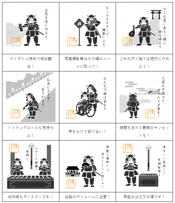 このほど、JTと鎌倉市観光協会では、「マナーを想う」一環として、皆さんが気軽に使えるピクトグラフを製作しました。ぜひご利用ください!