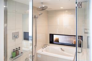 全室がユニットバスではなく、バス・トイレ別々の造りで、バスルームは洗い場付き。さらに「プレミアムコーナー(ツイン/ダブル)」はレインシャワーが備わり、洗面台も2名で並んで使えるダブルベーシンという特別仕様です。