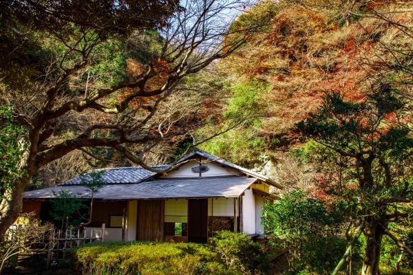 緑豊かな浄智寺谷戸に、昭和9年(1934年)築の茶室「北鎌倉 宝庵(ほうあん)」があります。入口の苔門からすでに別世界。野趣あふれる庭の飛び石を歩いた先に、2棟の茶室がひっそりと佇んでいます。
