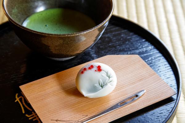 月1回の公開日には、お抹茶と一緒に、創作和菓子作家の空羽-kuu-さんが作る上生菓子も味わえます。北鎌倉の季節を表現した繊細で華やかなお菓子は、とってもフォトジェニック。取材日は赤い実をつけた南天を表現した冬のお菓子で、柚子のフレーバー餡が使われていました。