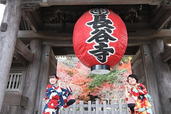艶やかな和装に身を包み、歴史ある鎌倉をそぞろ歩き