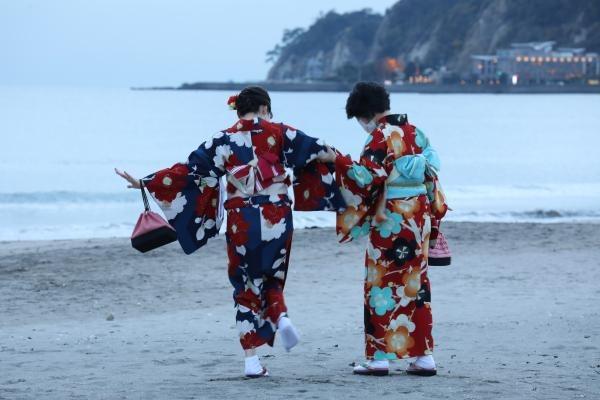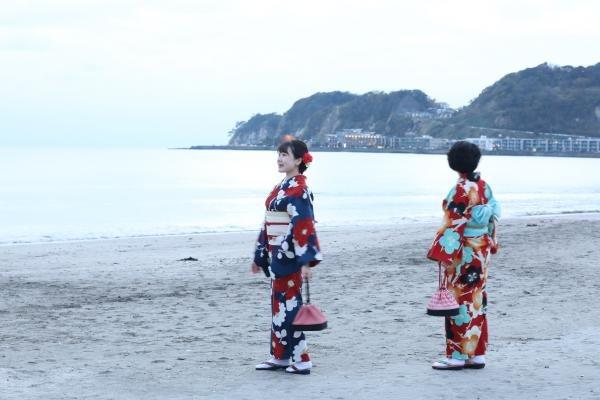 着物でお寺や神社巡りをしたら、由比ヶ浜海岸まで足を延ばすのもいいですね
