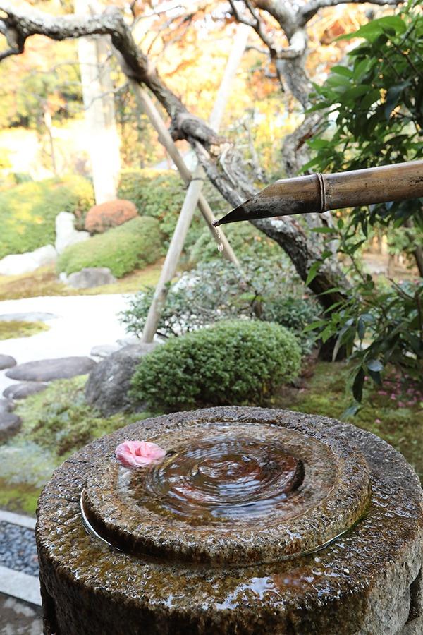 縁側に座ると庭園に水琴窟が目に入りました。水が滴るたびに神秘的で心地よい音が響きます。古くから伝わる音の演出にしばし耳を傾けます。