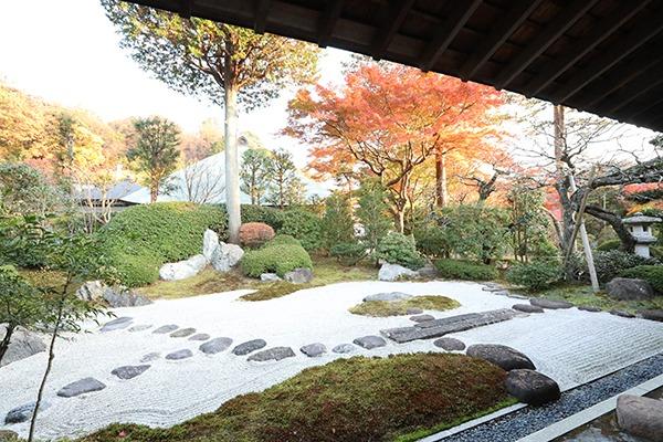 一条恵観山荘は2017年に一般公開されたので、鎌倉のなかではまだまだ穴場のスポット。アジサイや紅葉の時期にも、ゆったり鑑賞できます。秋には庭園のカエデが艶やかに色づき、11月下旬から12月には見事なグラデーションを堪能できます。苔むした岩や四阿(あずまや)をめぐり、秋らしい風景を心静かに楽しみましょう。