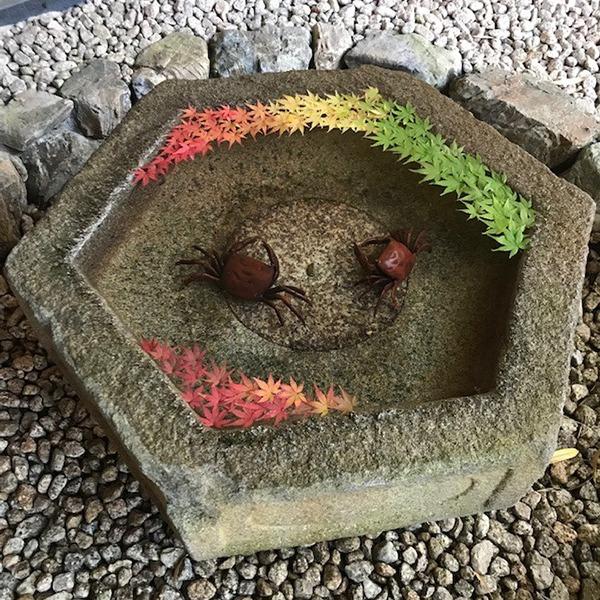 感染症対策から使われていない手水に、季節の花や紅葉を浮かべた「花手水」。華やかな花手水はSNS映えすると今とっても話題なのです。涼やかな水辺の装いに、覗き込むのが楽しみになります。