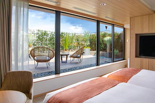 客室はツイン・ダブルの計12タイプ。リゾート感あふれるガーデンツインとダブルは各1室限定。ベッドルームと同じくらいの広さの屋外テラスが付いています。お風呂上がりに夜風に吹かれて涼んだり、朝の目覚めのコーヒーを飲んだりするのも気持ちよさそう!