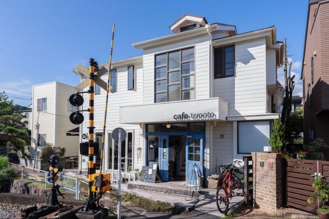 文学館での気持ち良い建物の空間と眺望に癒されたあとは、長谷駅すぐ、江ノ電の線路沿いにある「Cafe Luonto(カフェルオント)」でひと休み。白い外壁とブルーの扉のコントラストが北欧的な空間を連想させる。風通しのいい、ひとりでも入りやすい雰囲気のお店だ。店名はフィンランド語で“自然”を意味。