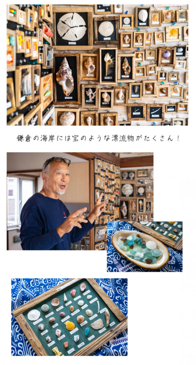 鎌倉島では、流木を使ったビーチクラフト教室や、漂着物を拾って鎌倉の歴史を学ぶビーチコーミングツアーの開催も。原嶋さんのお話を聞きながら、海岸を散策したら、ずっとディープな鎌倉体験ができるはず。