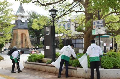 ▶本格的な夏を迎えた鎌倉で、早朝より鎌倉駅西口の時計台広場の定期清掃に参加