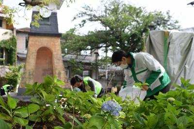▶アジサイシーズンの鎌倉。鎌倉駅西口の時計台広場定期清掃に参加(2021年5月)