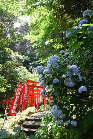 参道の鳥居の両脇に沢山植えられているアジサイを含め、境内のアジサイが全体的に見頃です。