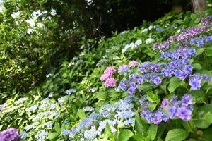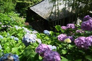 仏殿から半僧坊参道にかけて、境内随所でアジサイが色づき見頃を迎えています。