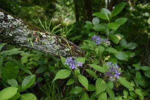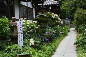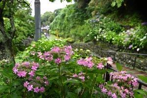 円覚寺境内にある塔頭の松嶺院。山野草や茶花が植えられ、様々なアジサイ・ヤマアジサイのほかに エゾカワラナデシコ、クガイソウ、ホタルブクロなどが咲いていました。